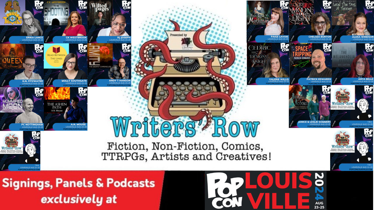 Writer’s Row is coming to the Kentucky International Convention Center as part of PopCon Louisville 2024. The event will consist of 3 days of book sales in our 20x30 booth, panels in the Writers’ Row Exclusive panel room, and author signings from Friday, August 23th through Sunday, August 25th.